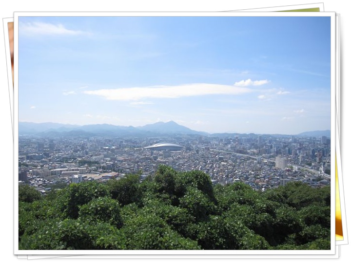 足立山(標高597.8m)の中腹から撮った小倉の町並みです。向かいに見える山は皿倉山(標高622.2m)。この山から見える夜景は100億ドルの夜景と謳われており、新日本三大夜景のひとつに数えられています。